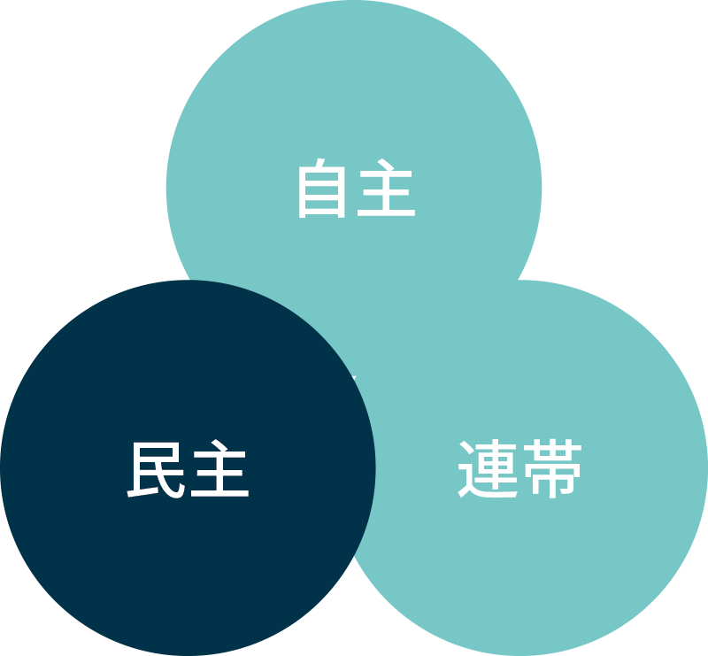 民主にも二つの意味があります。一つは、会の運営を会員の要求や意見に基づいて行い、ボス支配がおこらないようにするということです。もう一つの意味は、民主的なものの見方や考え方を積極的に広めていく、とりわけ企業内で実践していこうということです。このことによって組織の自浄力は強化され、発展が保障されます